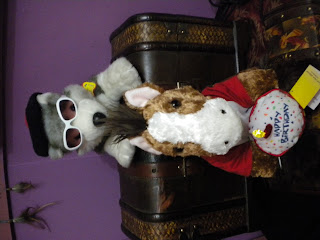 8) This is Calastria! Shanty got it for me from 'Build A Bear'. Isn't she adorable. She's a horse in case you're wondering. And the picture below that is of Calastria together with Hunter.